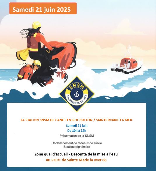 Le club nautique Sainte Marie Pêche Plaisance organise le samedi 21 juin de 10h00 à 12h00 en collaboration avec la station SNSM de Canet / Sainte Marie la Mer une matinée sécurité.